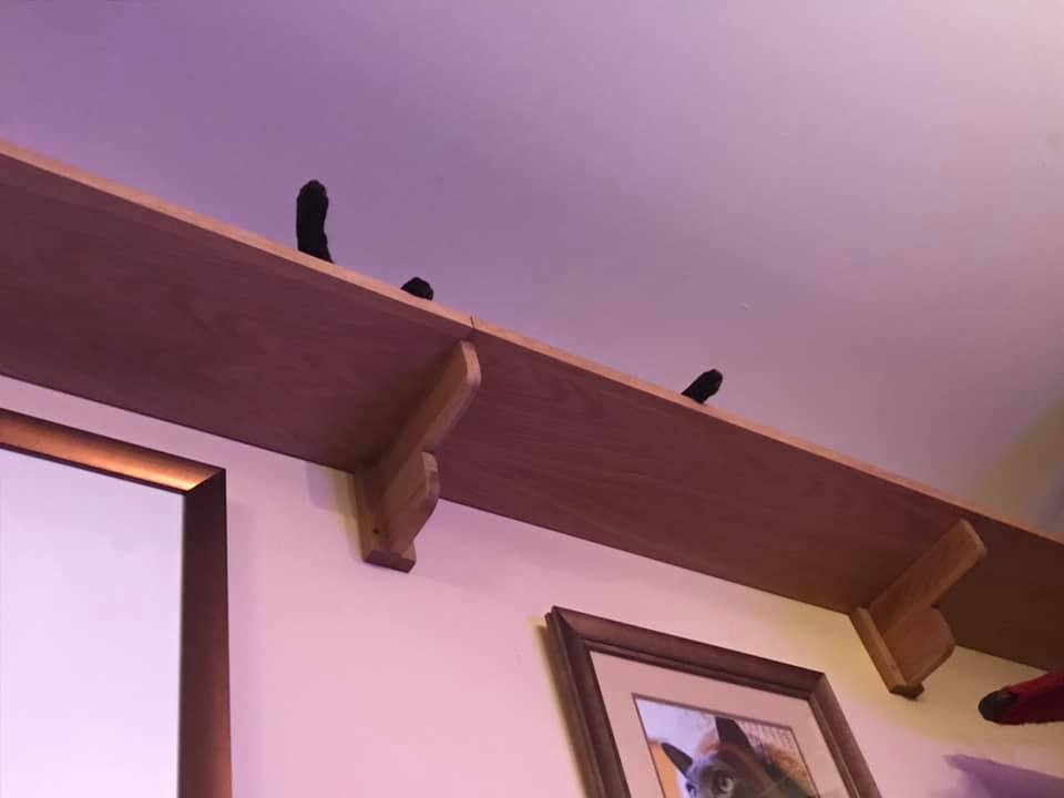 In addition to these shelves, we also had to fit a super cat highway in the living room.