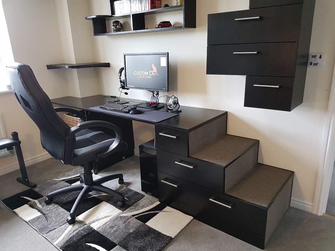 Dave and Gemma were looking for a way to combine their office space with a cat playground for Chubbs and Tubbs, whilst also offering functional storage units. We custom designed and built a solution following their brief that is not only stylish and high quality, but provides an engaging and spacious exercise environment with comfortable rest areas.