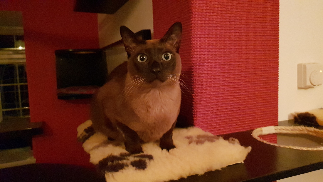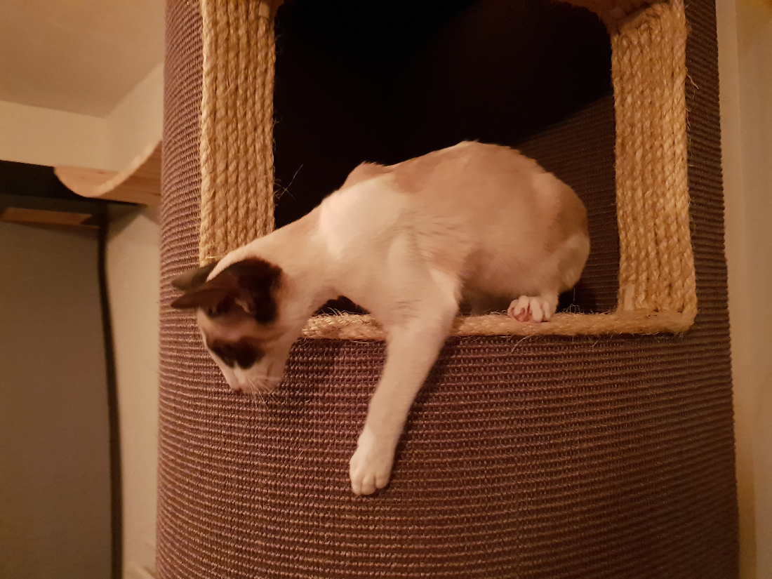 This giant tower was made for the cats to be able to play and sleep inside. They can also climb all the way to the top from the inside!
